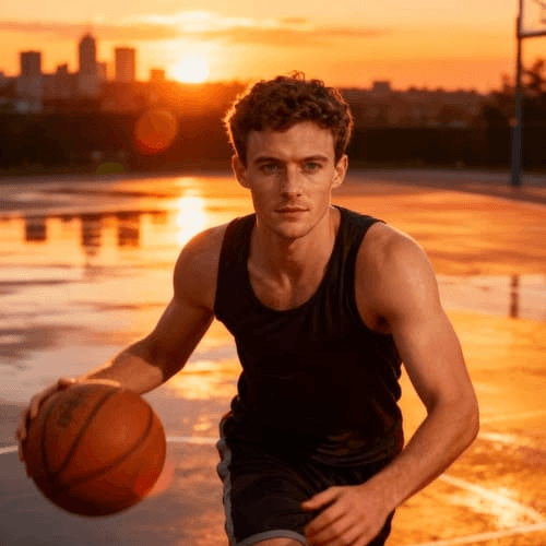 Action Enhancement: Change a person holding a basketball into one caught mid-jump shot, capturing a more dynamic moment.