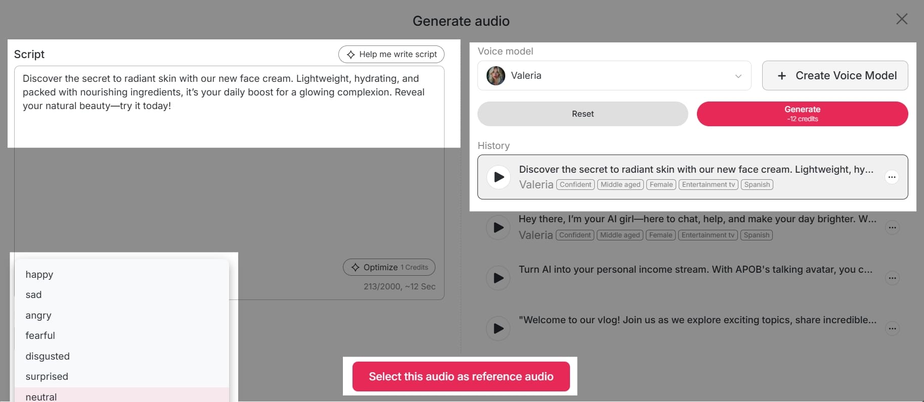 Gracias a la función de "sincronización labial", tu AI puede hablar o cantar. Elige una voz de la biblioteca de APOB AI, que ofrece múltiples idiomas y acentos. Esto te permite dar vida a un personaje capaz de comunicarse con tu audiencia.