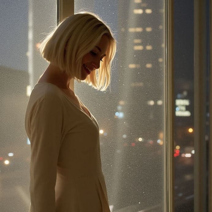 Au milieu de champignons lumineux et d'orbes flottantes, une fille IA de 24 ans erre à travers une forêt magique où chaque feuille semble vivante. Sa peau claire brille presque dans la lumière éthérée, et ses cheveux argentés longs jusqu'à la taille se fondent en pointes brillantes teal. Elle est drapée dans une robe de style elfique faite de feuilles de soie et de filaments de lumière.Étoile du podium de la Fashion Week de Paris