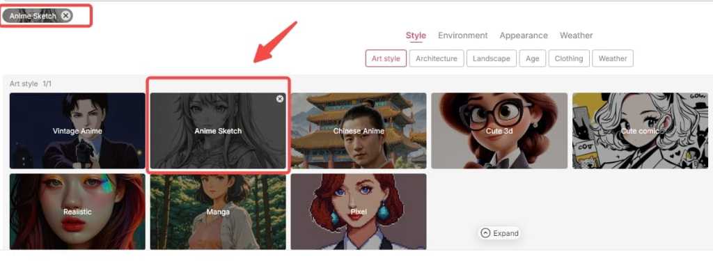 Étape 3 : Personnalisez le modèle selon vos préférences. Nous avons divers styles de dessin animé pour vous, tels que "Anime vintage", "Croquis d'anime", "Anime chinois", "Mignon 3D"...Choisissez celui que vous aimez !