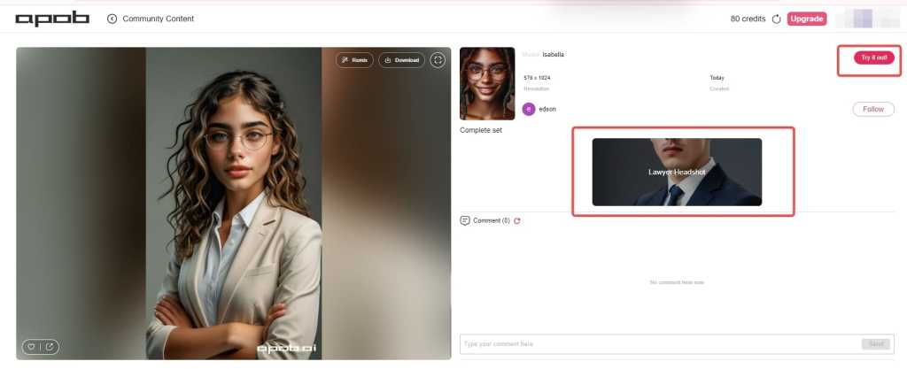 Étape 1 : Inscrivez-vous pour un abonnement gratuit sur APOB AI et recevez 80 crédits. Ensuite, cliquez sur "Créer un modèle de portrait."